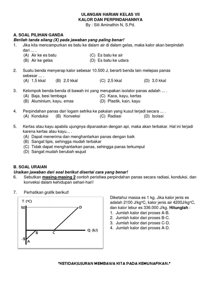 Latihan Soal Soal Kalor Dan Perpindahan Smp Kelas 7 / Lkpd Perpindahan Kalor Kelas 7 Smp Interactive Worksheet / Materi tentang perpindahan kalor secara lengkap dapat anda dapatkan pada mata pelajaran ipa/ fisika, mulai dari sd/mi, smp/ mts, dan sma/ma.. Latihan soal ini akan mengupas tentang materi kalor yang mencakup pengertian kalor dan perpindahan kalor. Rangkuman materi wujud zat dan kalor kelas 7 smp. Es (kalor jenis 0,5 kal/g°c) sebanyak 10 gram pada suhu 0°c diberi kalor sebanyak 1000 kalori. Materi kalor kelas 7 contoh soal kalor dan jawabannya | blog ipa smp kalor indar's information: Materi soal disarikan dari buku paket .